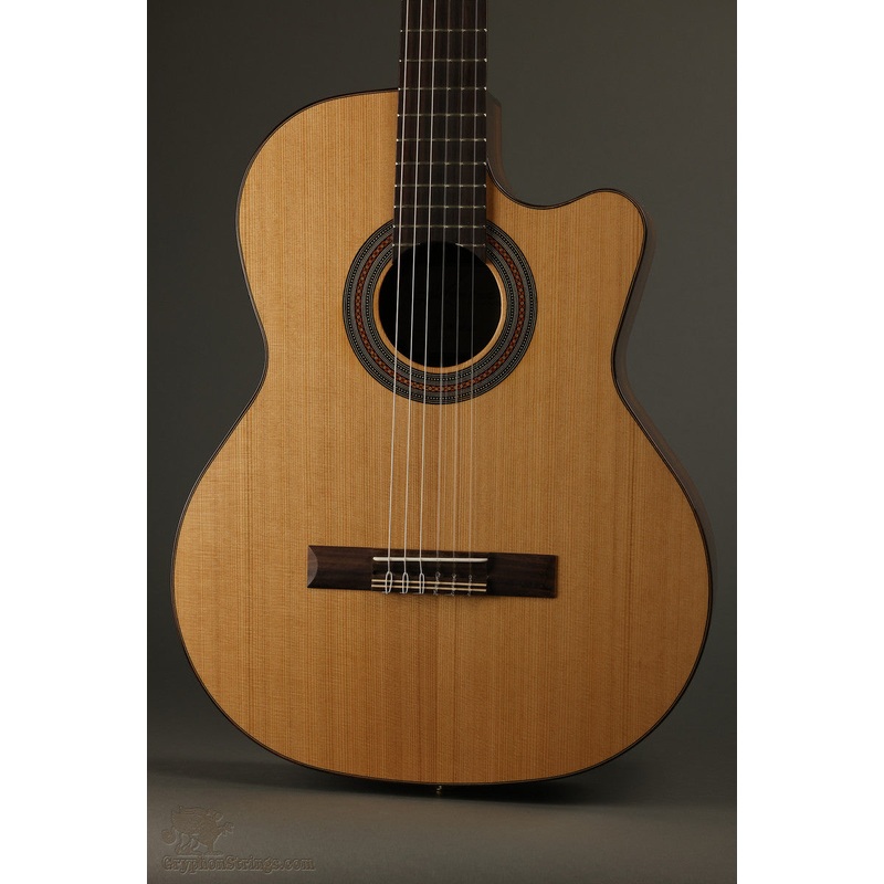 The Kremona F65CW is a stage-ready classical nylon string guitar, specifically built for players looking to bring warm acoustic tones to the bandstand. Fully equipped with a Fishman Classica III electronics system and slick venetian cut-away, the F65CW blends modern convenience with traditional tones. Unlike other Acoustic-Electric hybrids, this guitar retains the standard depth of a standard Spanish-style guitar, meaning that you get the same robust low-end tones of a traditional instrument, but with enhanced access to the upper ends of the fretboard. The pairing of a Solid Western Cedar top and Layered Indian Rosewood back and sides offer a nice blend of sweetness and complexity and make it the perfect instrument for players seeking to blend the intimacy of an organic acoustic instrument with the versatility of amplification.